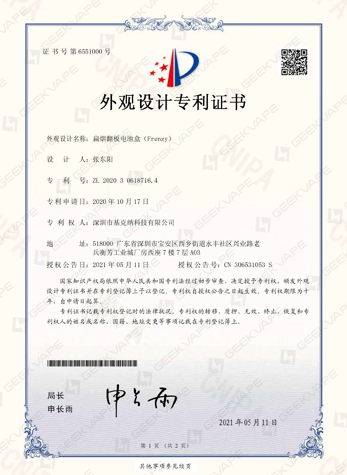 团队成员拥有10余年成熟的雾化研发实力与经验,目前已申请专利200余项,各类商标60余个。外观设计专利46%,实用新型专利34%,发明专利20%。